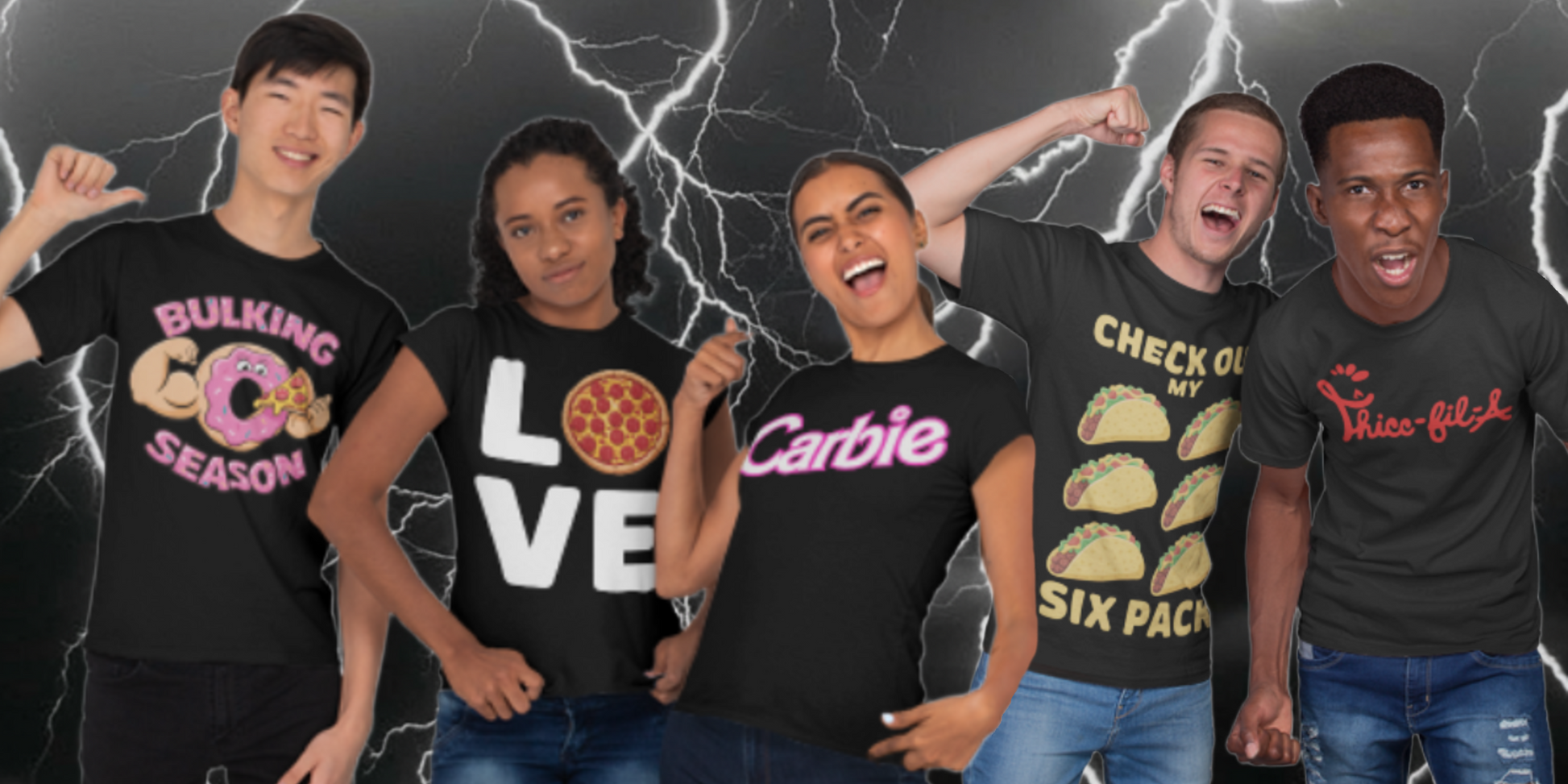 A random, hilarious food-themed gym shirt. On a premium black tee. You don't pick the design—we do. The catch? They're all awesome. Ideal for gift-giving or treating yourself. Do you dare?
