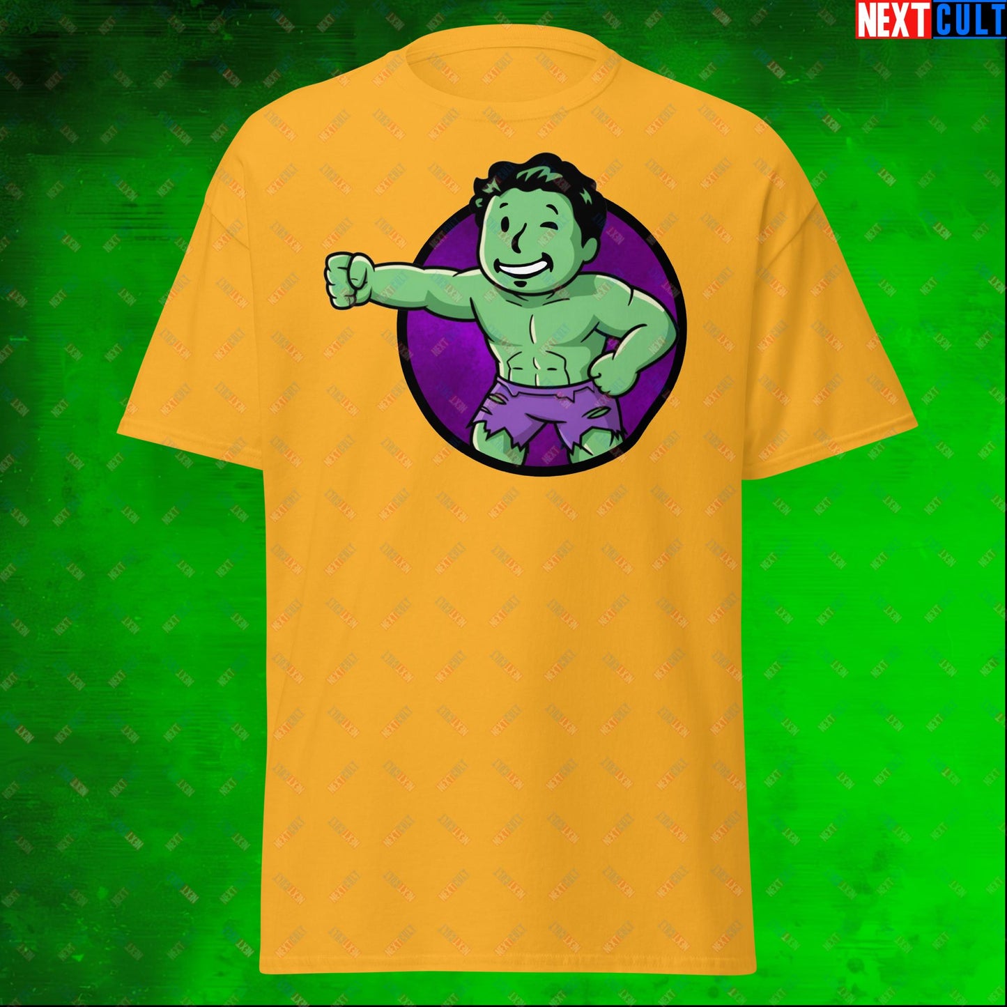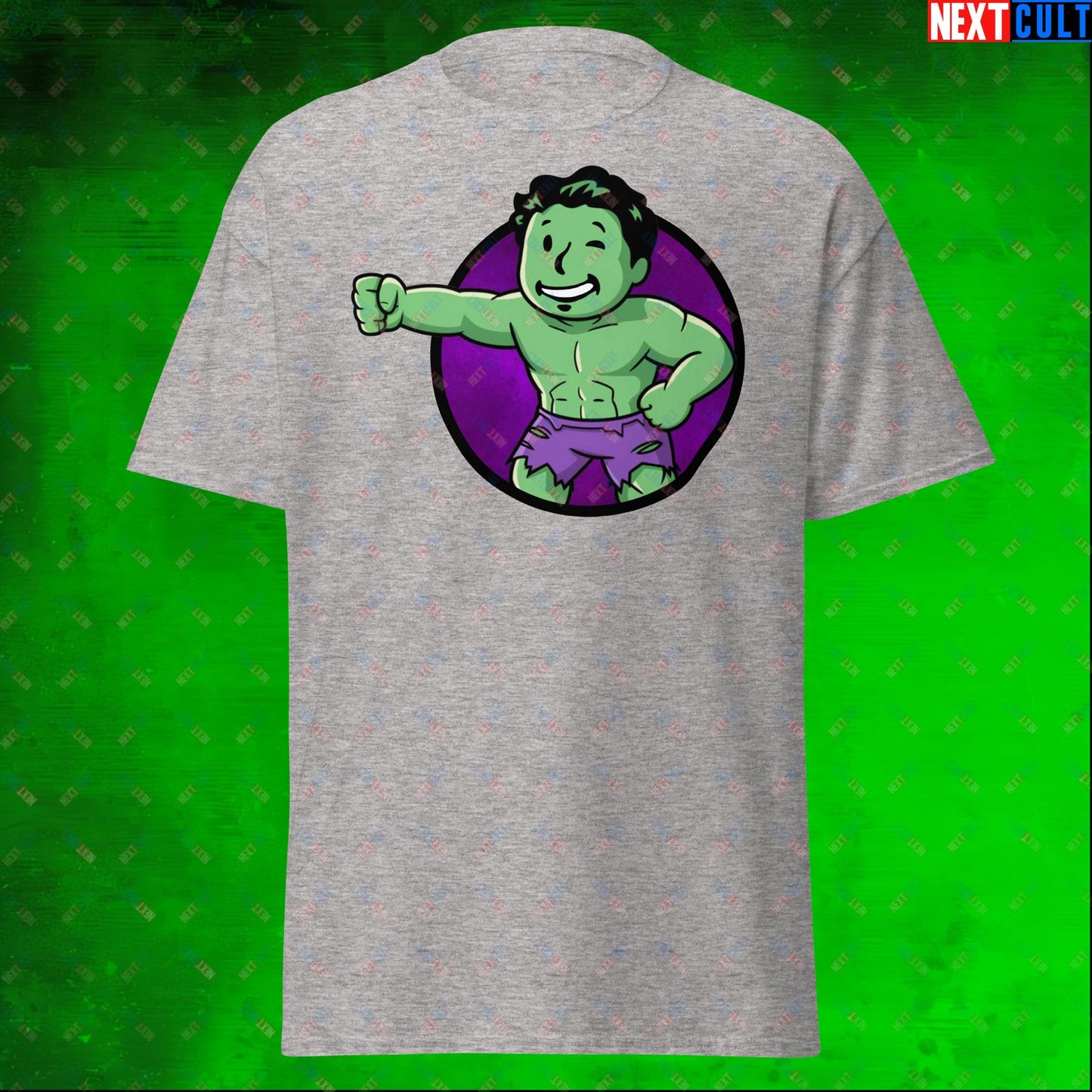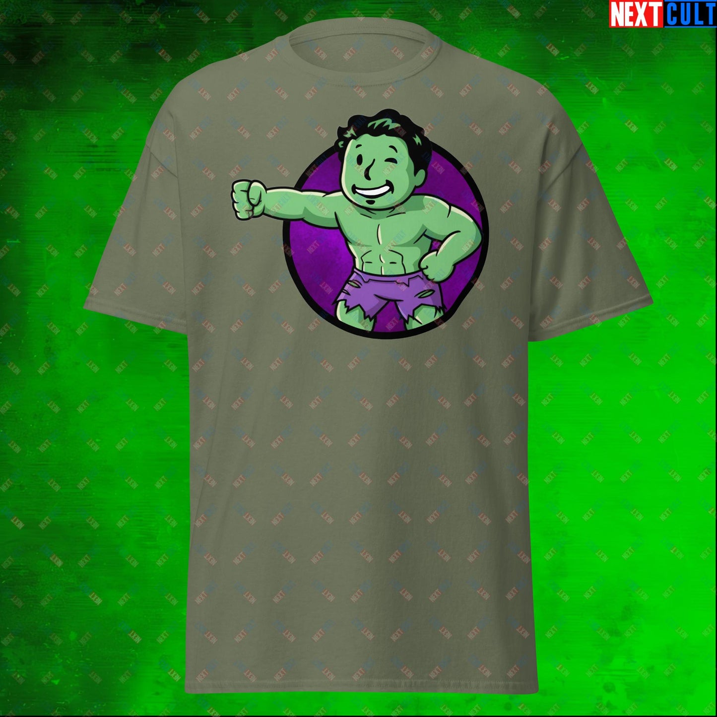 Angry Boy Hulk Vault Boy Fallout Funny Meme Cartoon Mashup Unisex tee