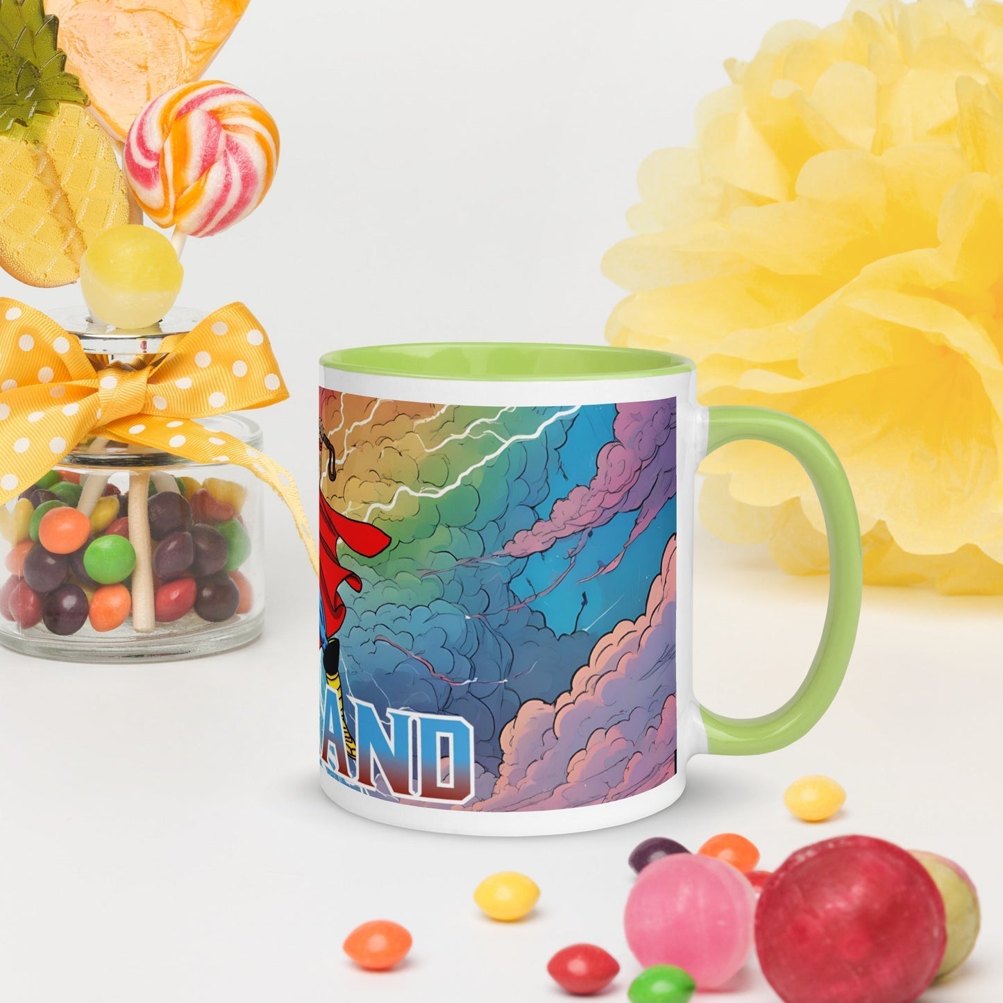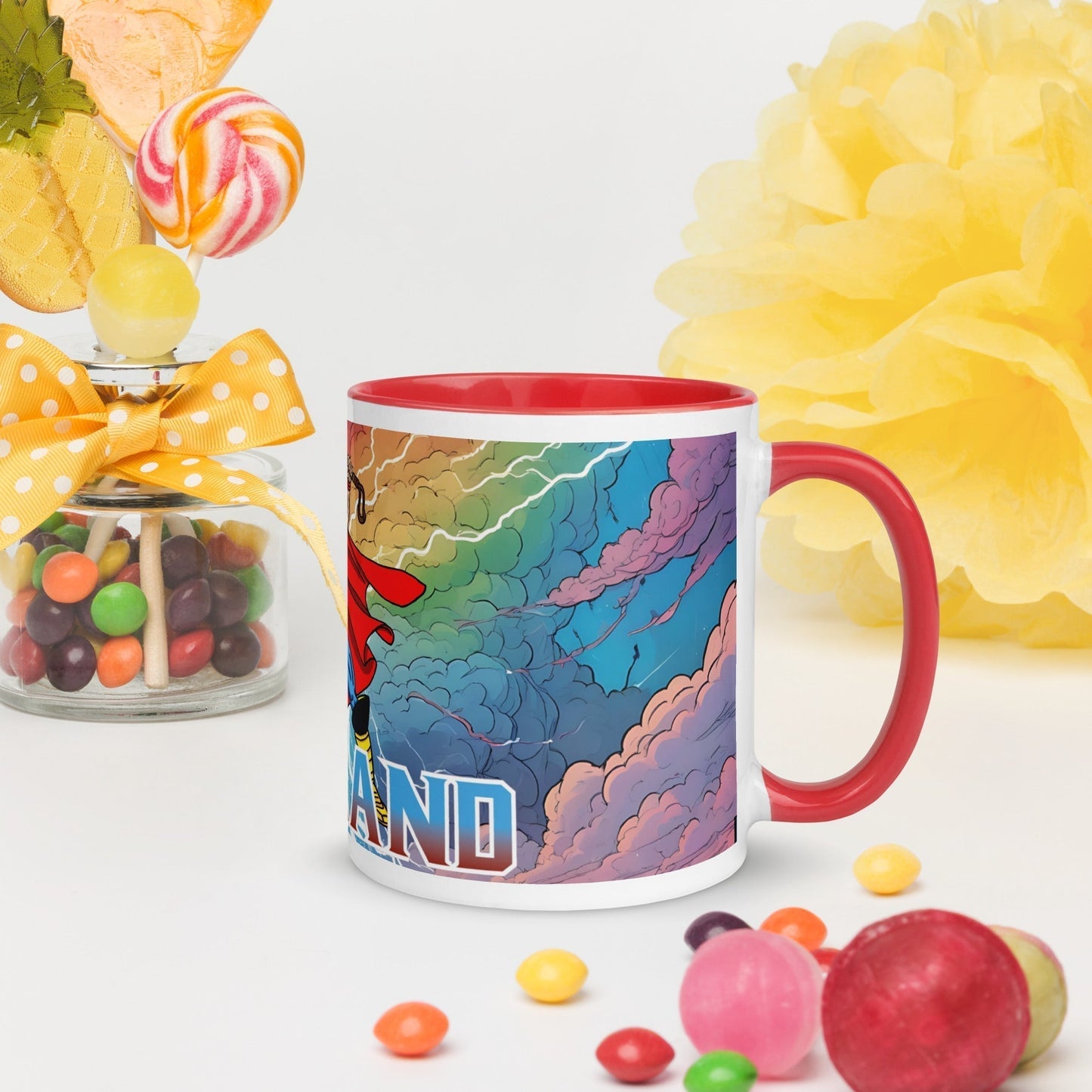 • Colored rim, inside, and handle