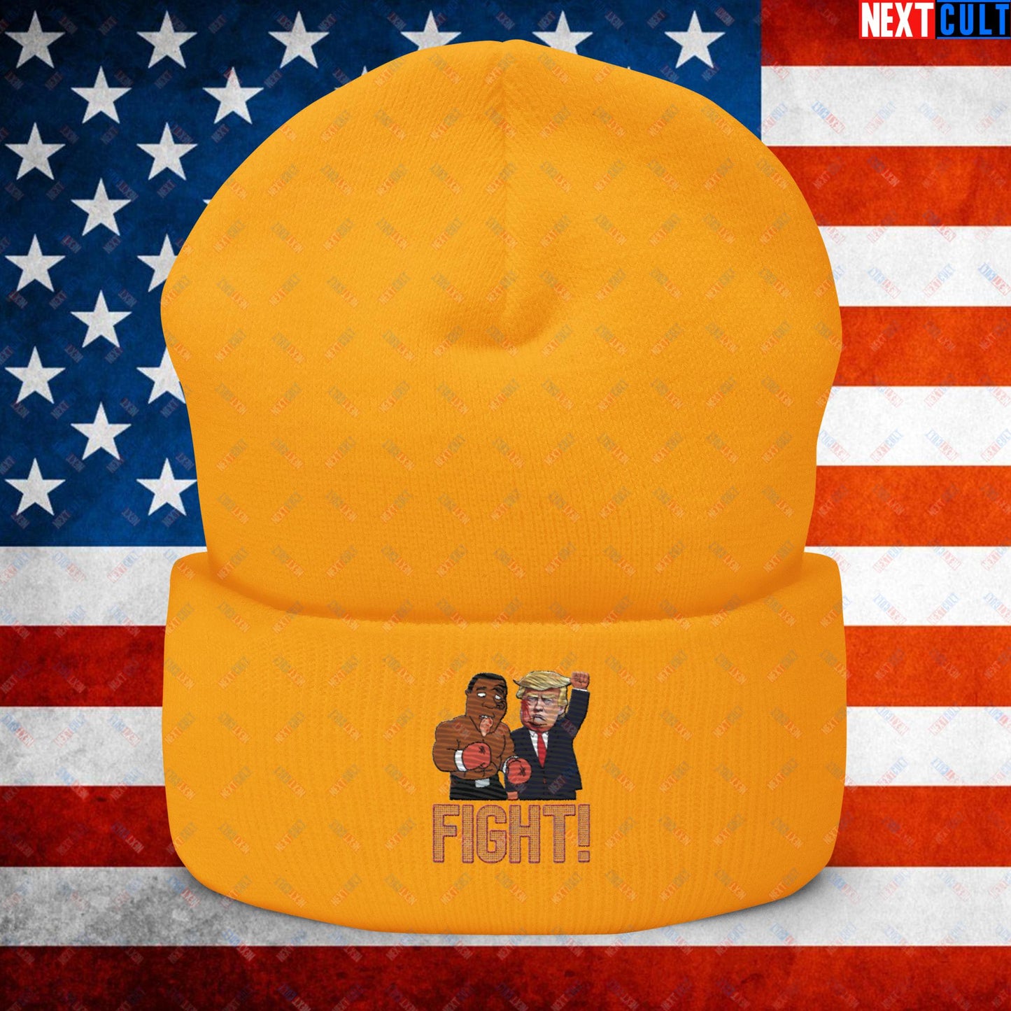 Fight Donald Trump Shooting Meme Funny Mike Tyson Ear Cuffed Beanie