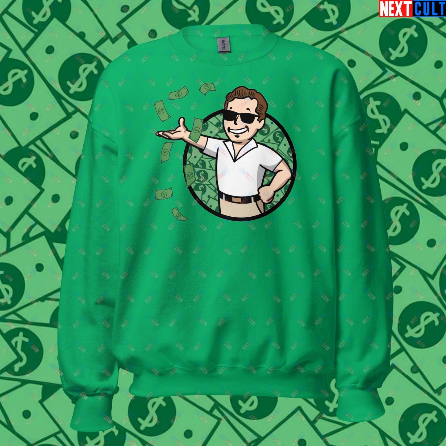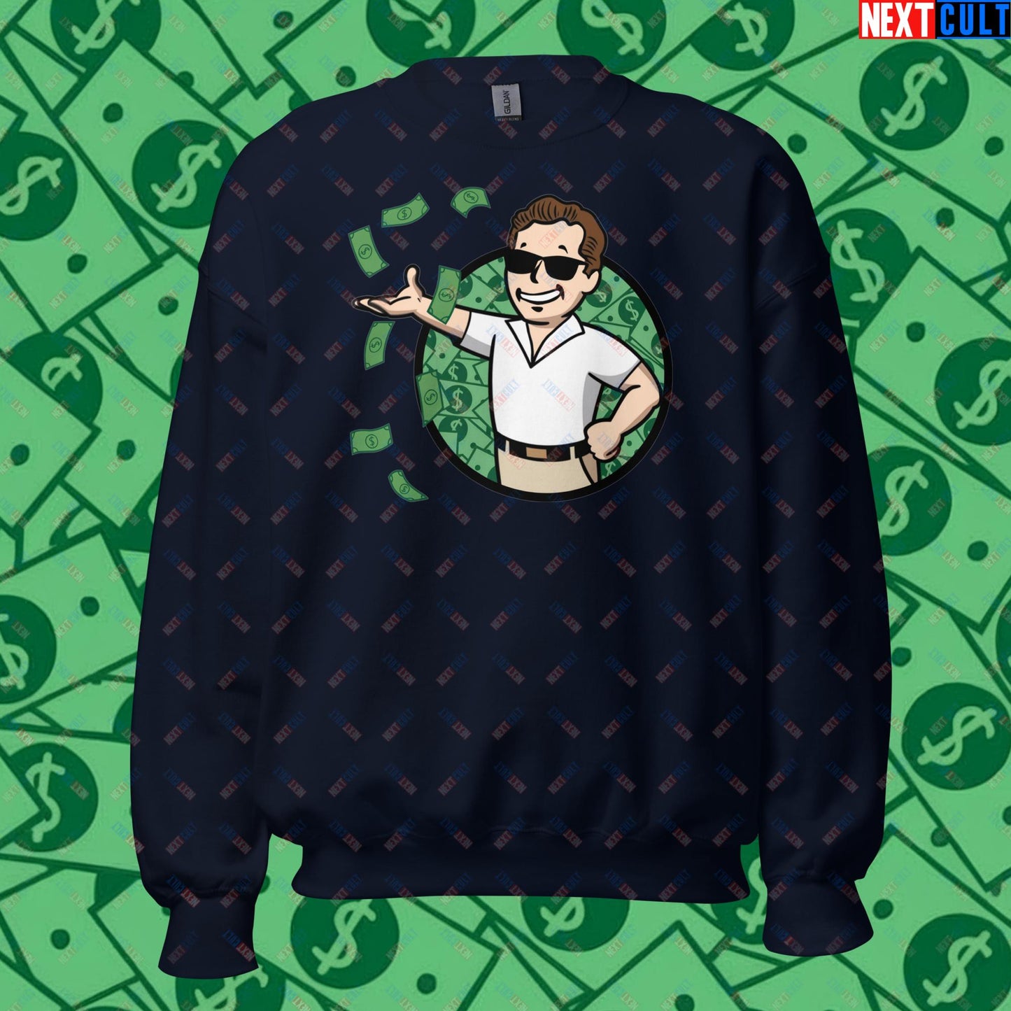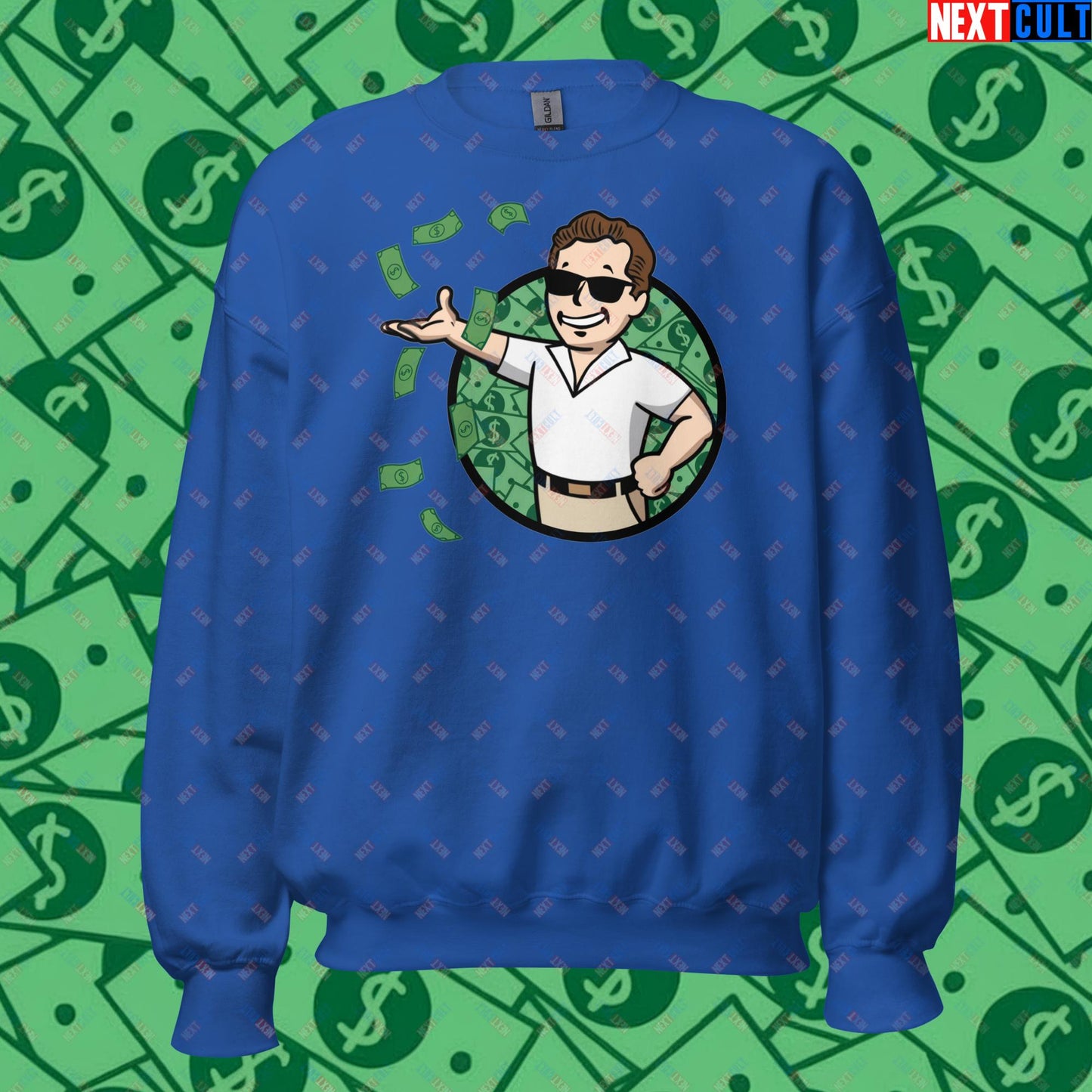 Finance Boy Wolf of Wall Street Leonardo DiCaprio Vault Boy Fallout Funny Meme Cartoon Mashup Unisex Sweatshirt