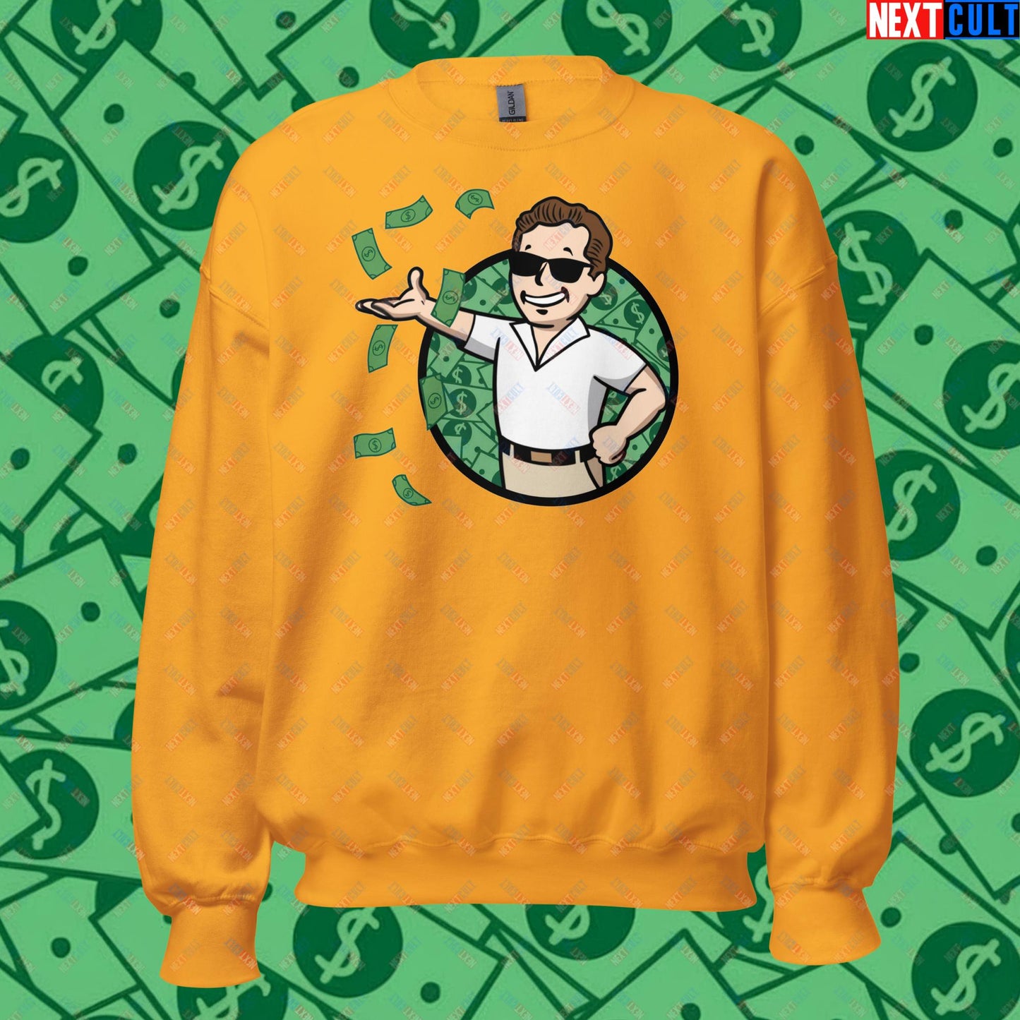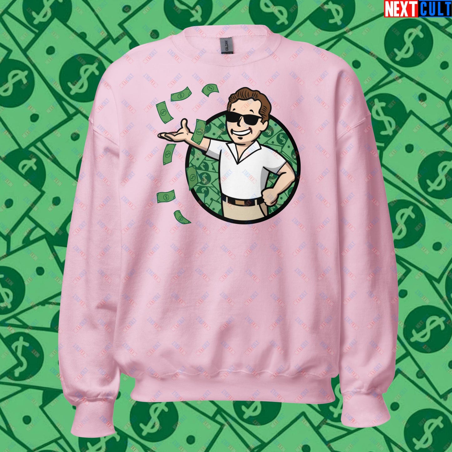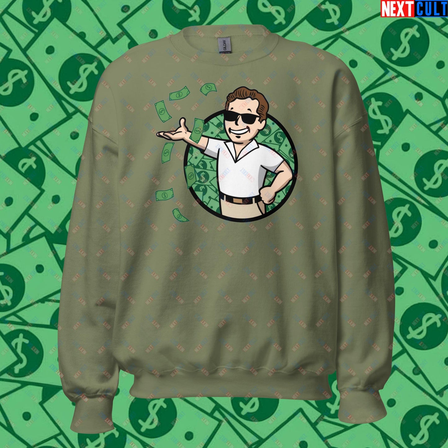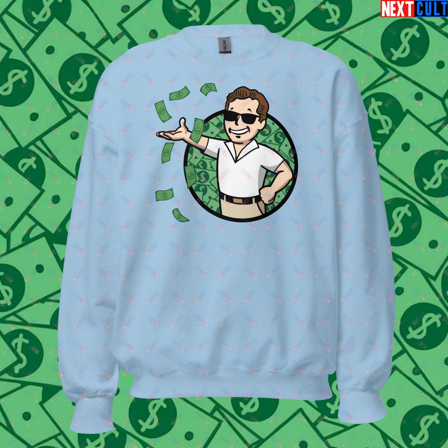 Finance Boy Wolf of Wall Street Leonardo DiCaprio Vault Boy Fallout Funny Meme Cartoon Mashup Unisex Sweatshirt