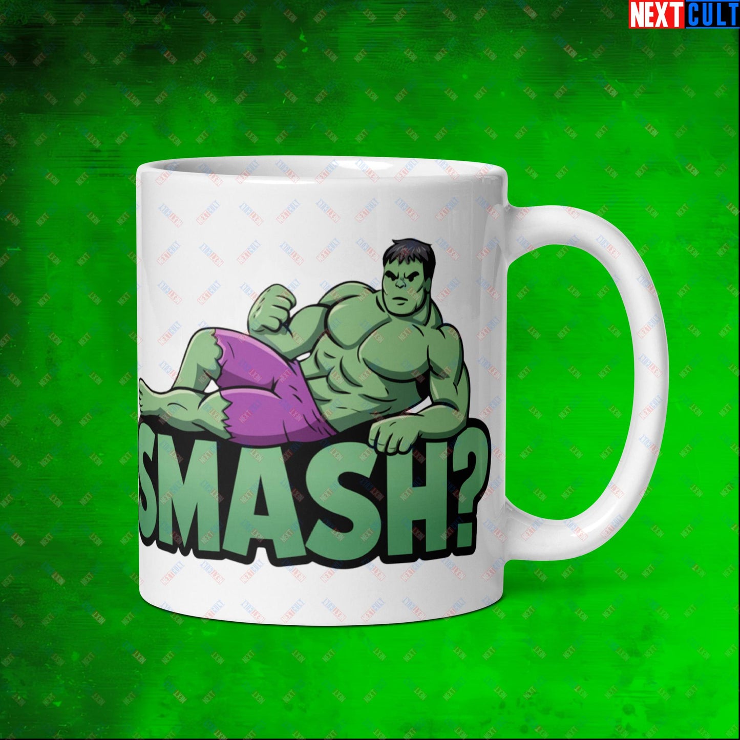 Hulk Smash? Funny Sexy Hulk Meme Cartoon White glossy mug