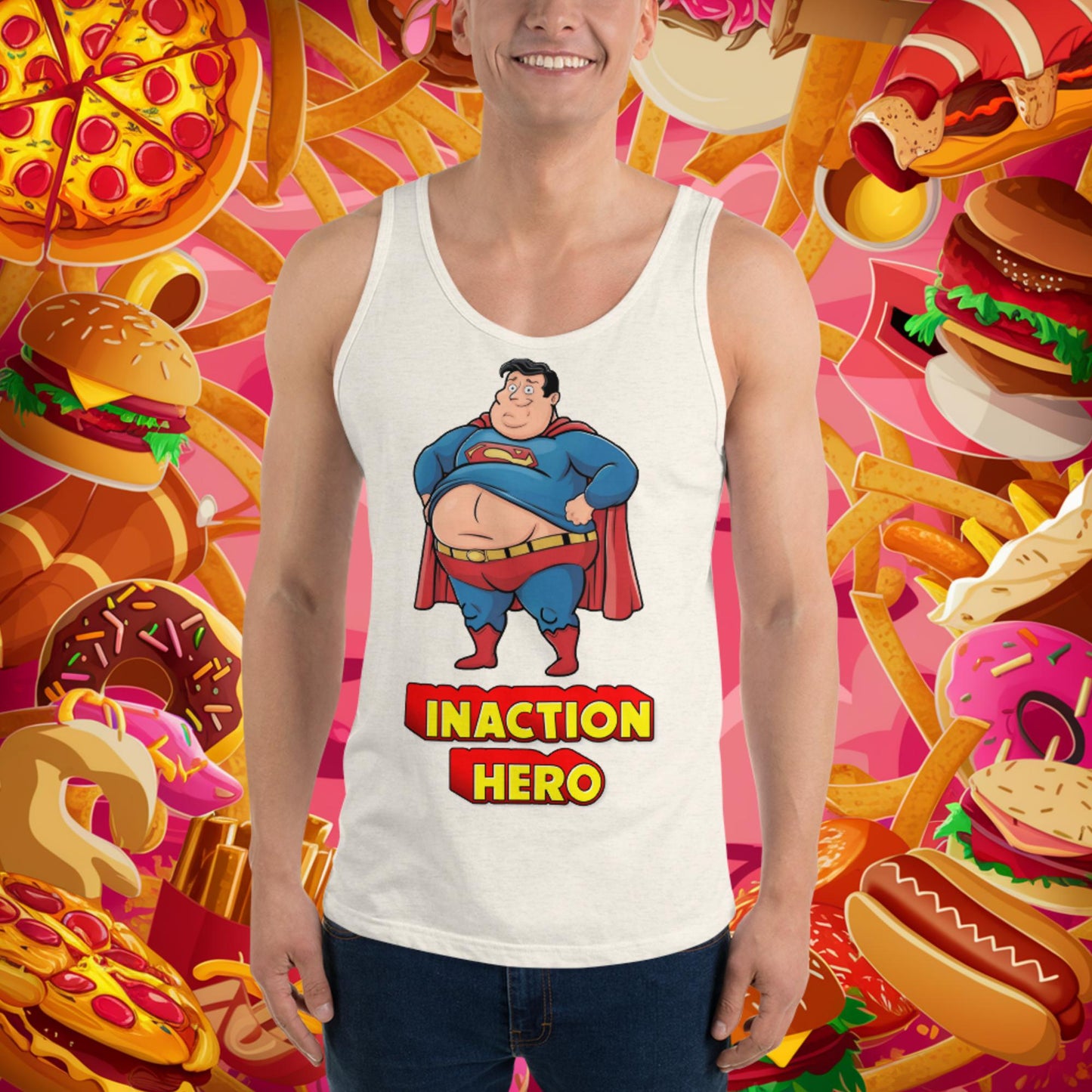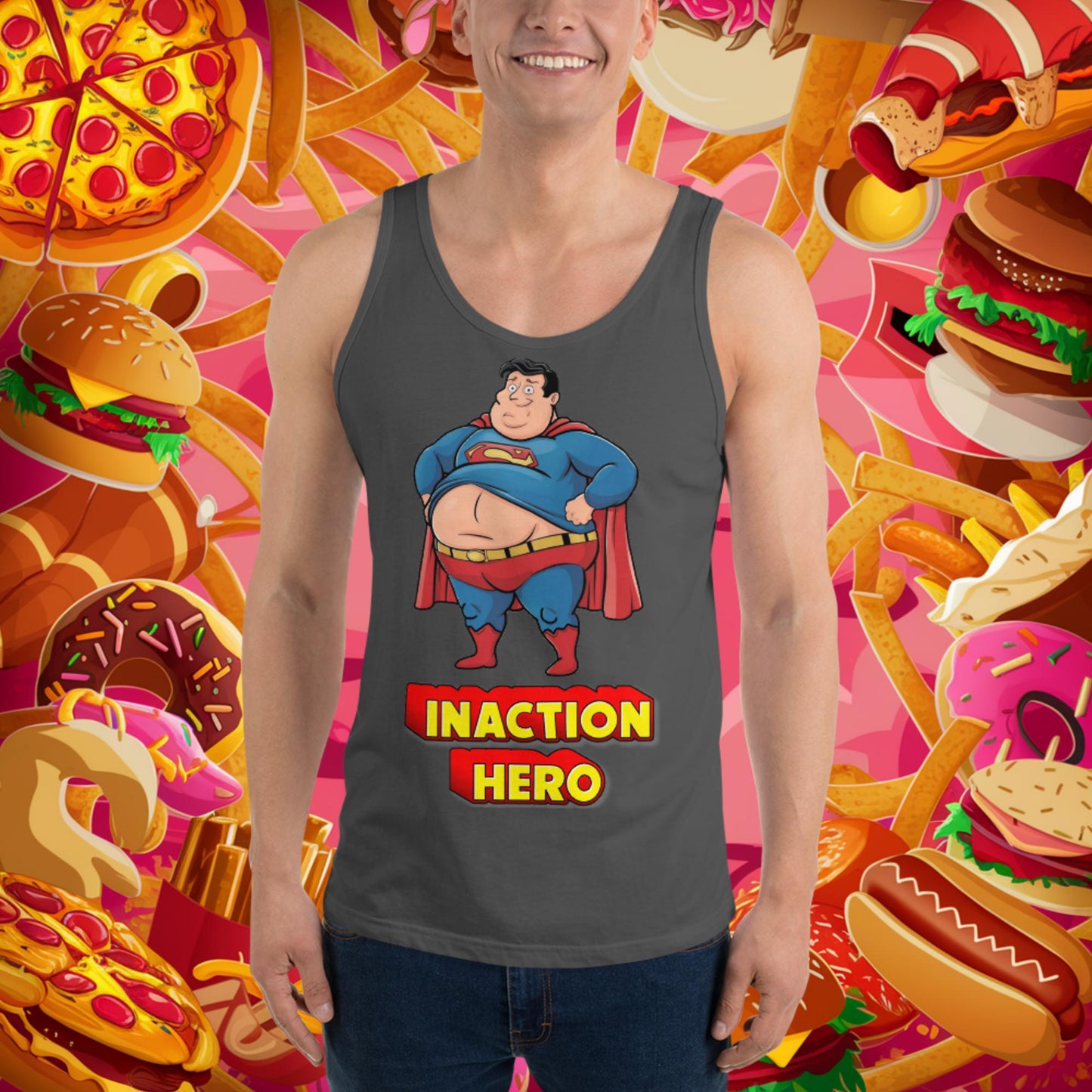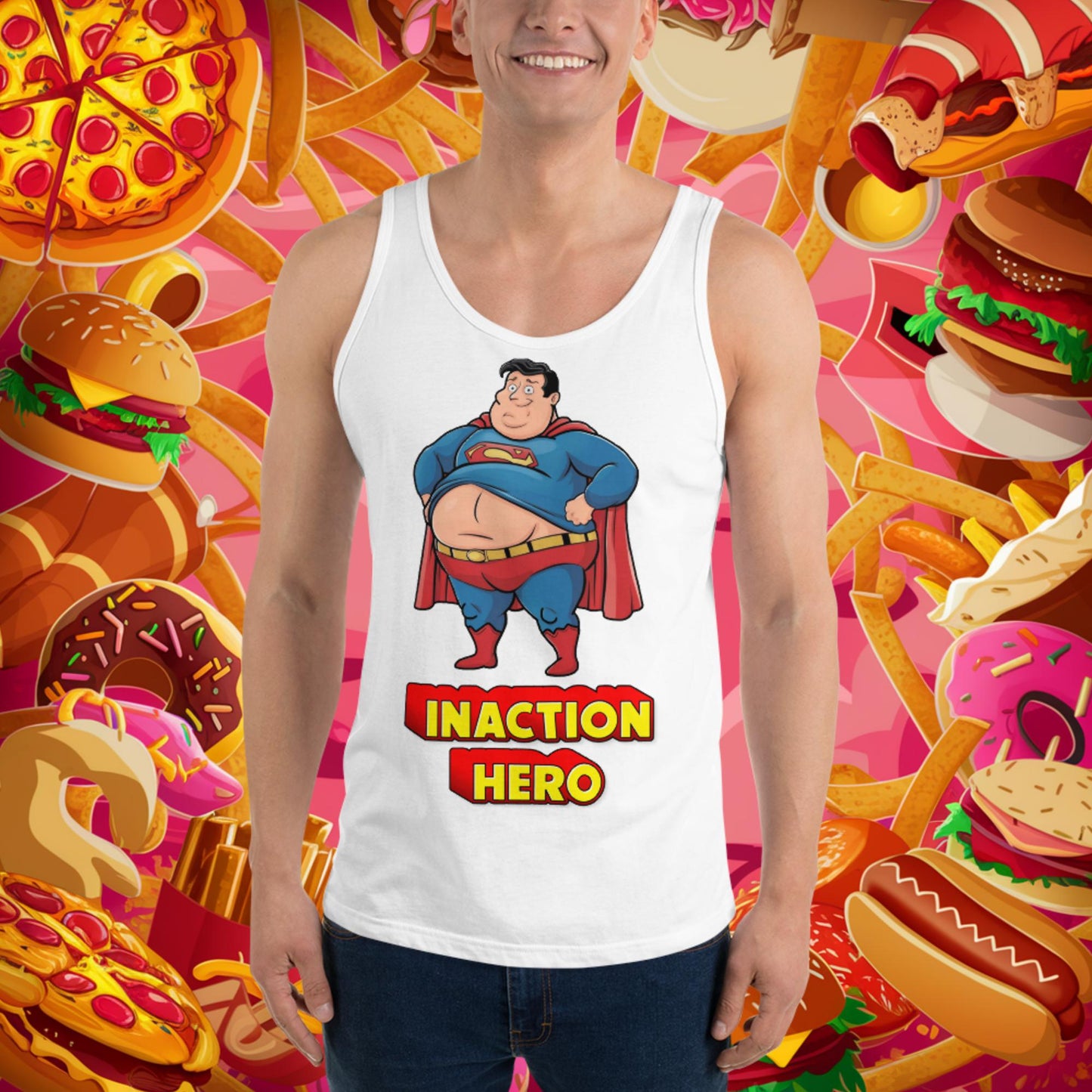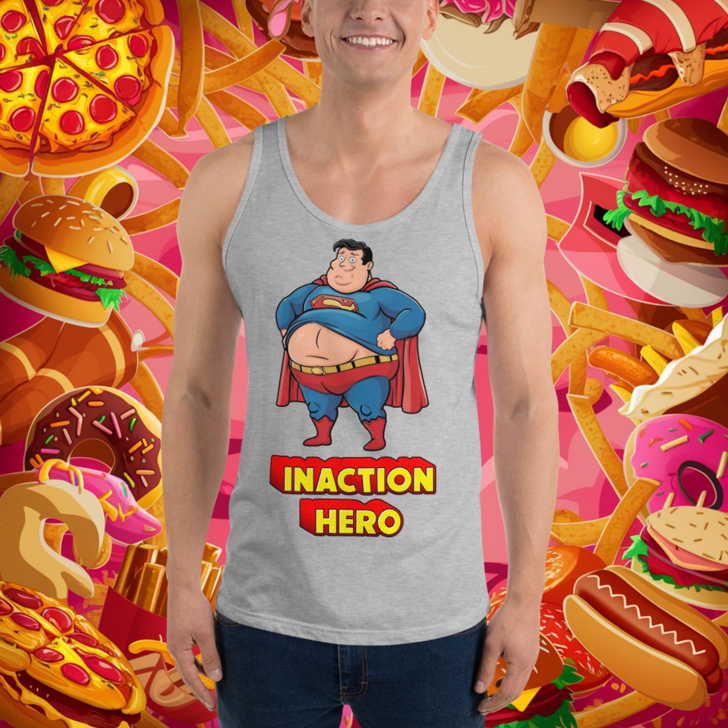 Inaction Hero Funny Fat Superhero Tank Top