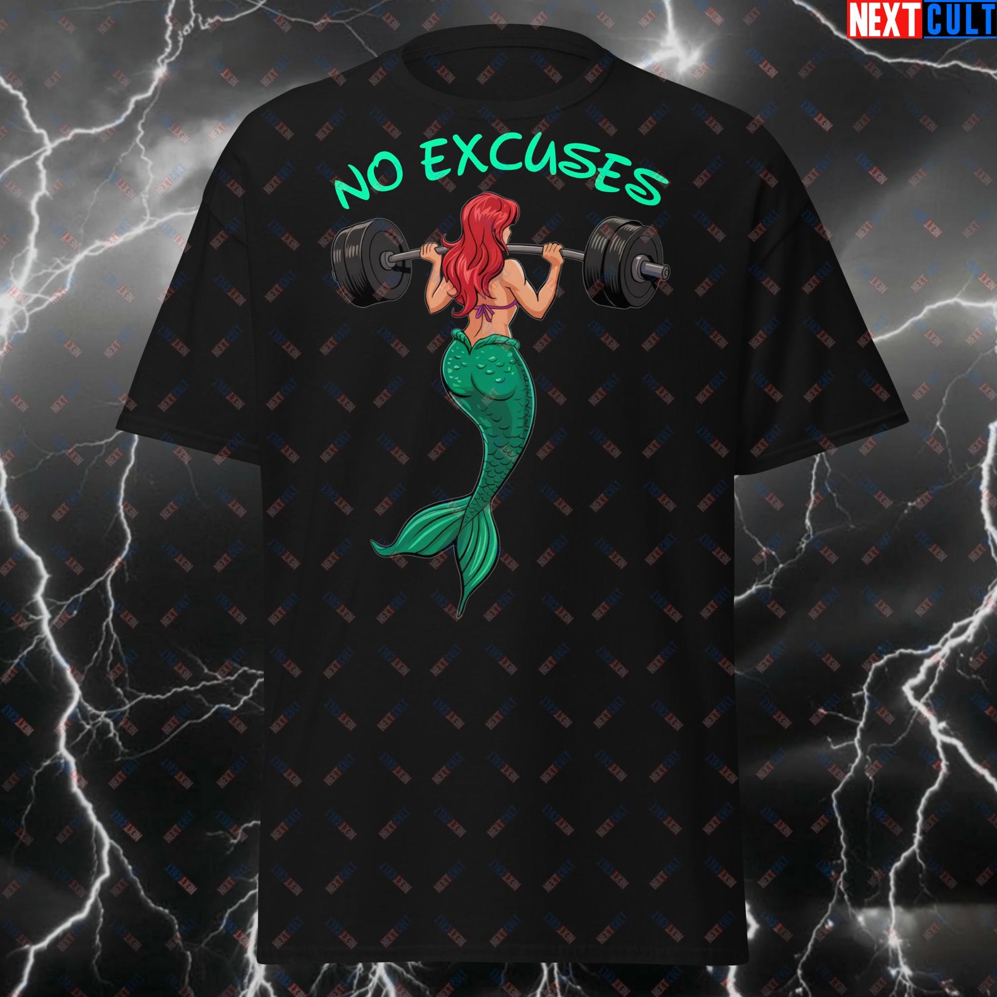 No Excuses Mermaid Gym T-Shirt – Funny Workout Tee for Strong Women, Leg Day Meme Pump Cover for Lifters & Fitness Motivation