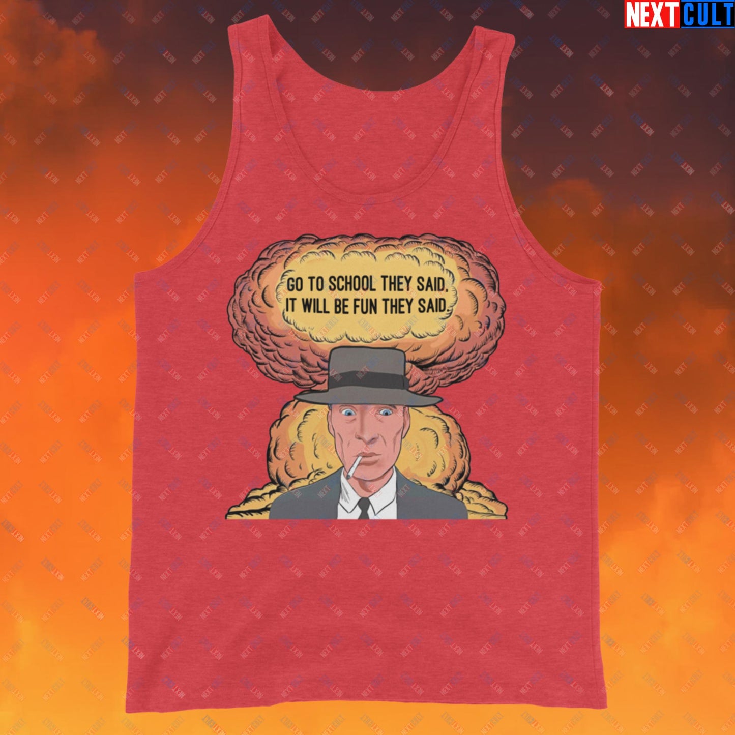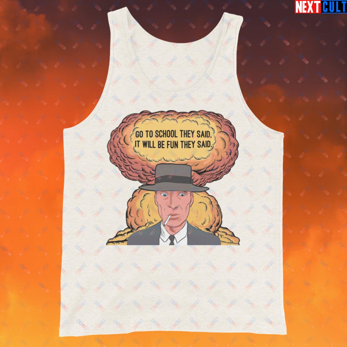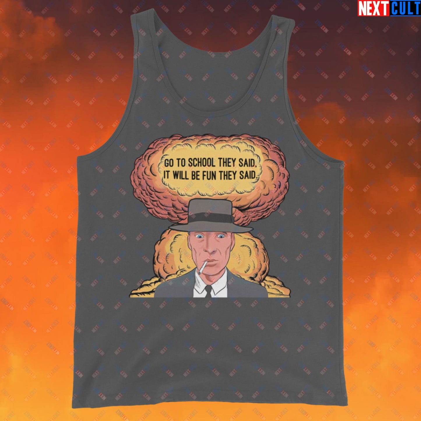 Oppenheimer Go To School They Said, It Will Be Fun They Said Meme Funny Movie Parody Cartoon Tank Top