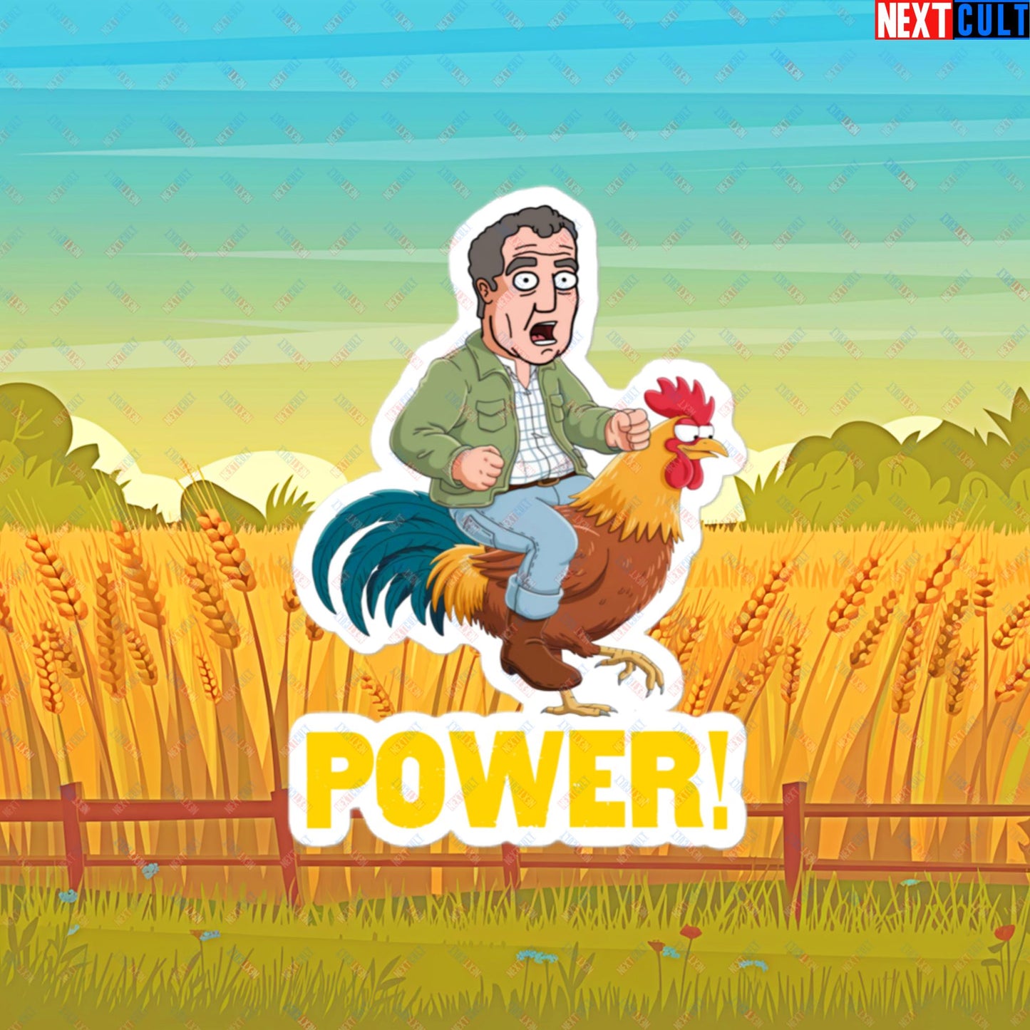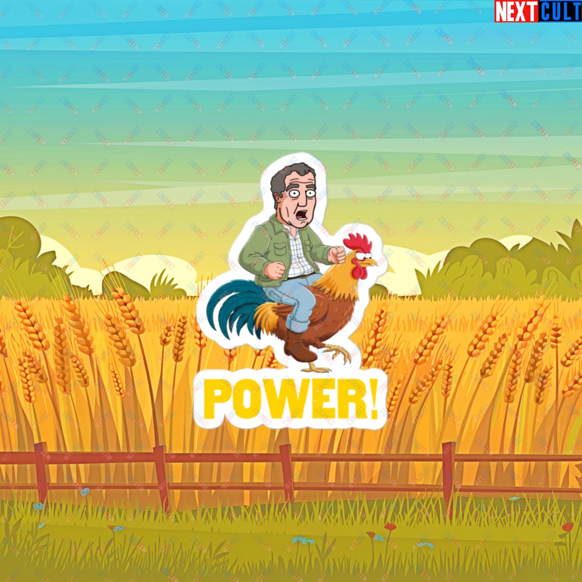 Power Rooster Chicken Farming Jeremy Clarkson's Farm Diddly Squat Grand Tour Top Gear Funny Meme Cartoon Bubble-free stickers