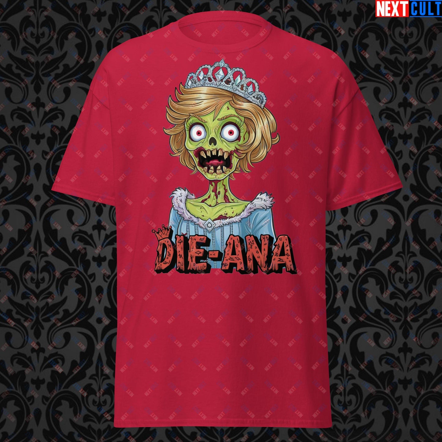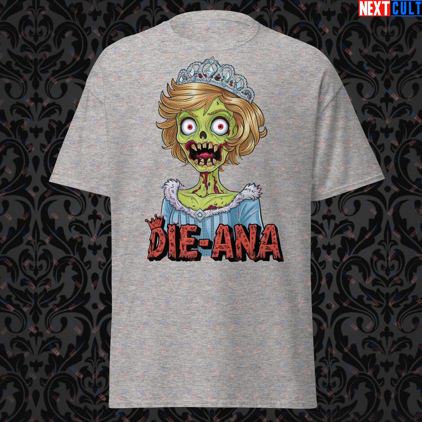 Explore the darker side of humor with this unique design featuring Princess Diana reimagined as a zombie, cleverly titled "Die-Ana." This bold and imaginative artwork taps into conspiracy theories surrounding the Royal Family, blending historical intrigue with a touch of macabre humor. Perfect for those who appreciate a twist on traditional icons, this design offers a playful yet edgy take on one of the most beloved figures in history. Whether you're into conspiracy theories, enjoy a good laugh, or looking for a memorable gift, this design brings a unique blend of wit and irreverence to any collection.
