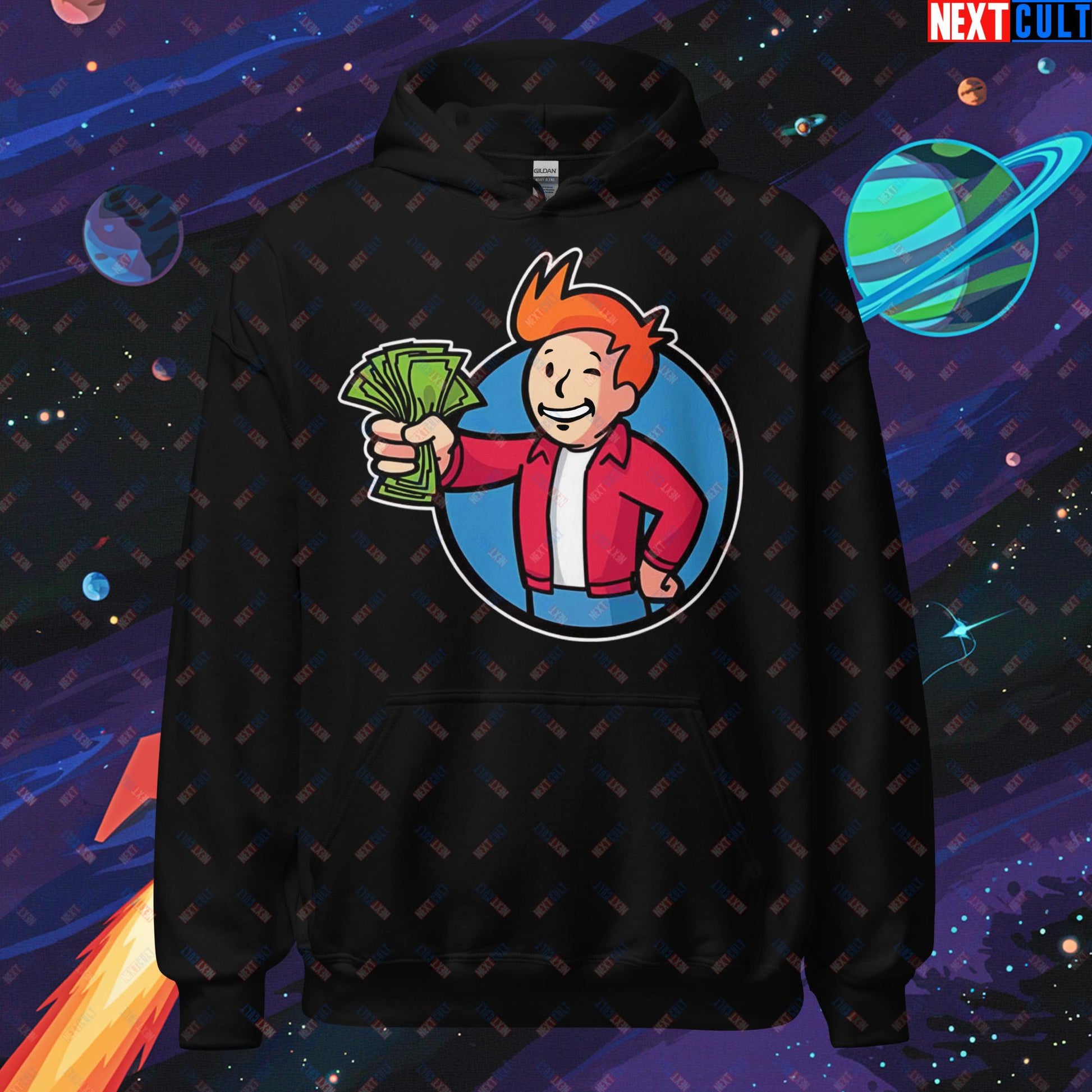 Shut Up And Take My Money Fry Boy Futurama Vault Boy Fallout Funny Cartoon Mashup Unisex Hoodie